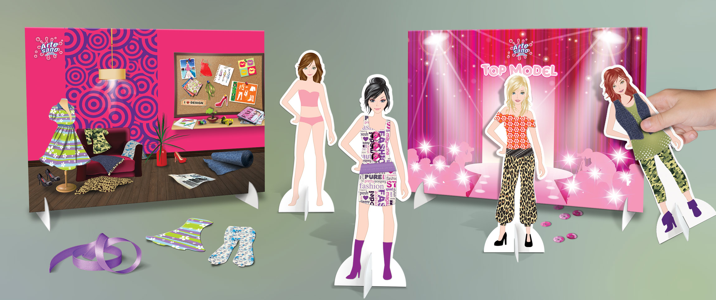 Desarrollo de juego lúdico de diseño de moda. A partir de la idea del cliente se desarrollaron todas las piezas para que pudieran ser materializadas. El trabajo realizado comprende: diseño gráfico, packaging, ilustraciones, redacción y planeamiento de instructivos.